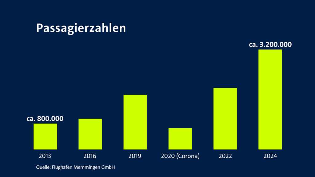 Laut einer aktuellen Auswertung der Stadt wächst durch die steigenden Passagierzahlen aber auch die Wertschöpfung durch Übernachtungsgäste. In vier Jahren fast um das Vierfache, auf rund 4,7 Millionen Euro im vergangenen Jahr. Und der Flughafen will weiterwachsen: Künftig sollen noch mehr Maschinen in Memmingen landen und starten können.