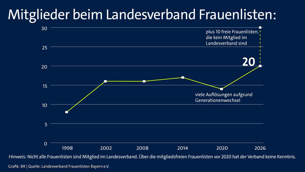 Frauen sind in der Politik unterrepräsentiert – vor allem auf kommunaler Ebene. In bayerischen Gemeinderäten ist nur jedes fünfte Mitglied weiblich, in Stadträten und Kreistagen jedes dritte. Unter Landräten und Bürgermeistern liegt der Frauenanteil bei gerade mal einem Zehntel, so aktuelle Zahlen des Bayerischen Landesamts für Statistik. Ein Weg, um den Frauenanteil zu steigern, sind Frauenlisten. Bei der Kommunalwahl am 8. März 2026 sind bayernweit 30 solcher parteiunabhängigen Listen angemeldet – so viele wie nie zuvor.
