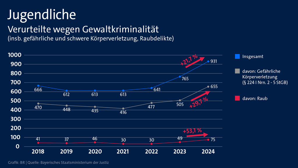 Die Gewaltbereitschaft in Bayern nimmt zu - vor allem unter Jugendlichen. Das ist eine Erkenntnis der Strafverfolgungsstatistik der bayerischen Justiz. Minister Georg Eisenreich (CSU) hat am Mittwoch die Zahlen rechtskräftiger Verurteilungen für das Jahr 2024 vorgestellt - und seine Schlüsse daraus gezogen.