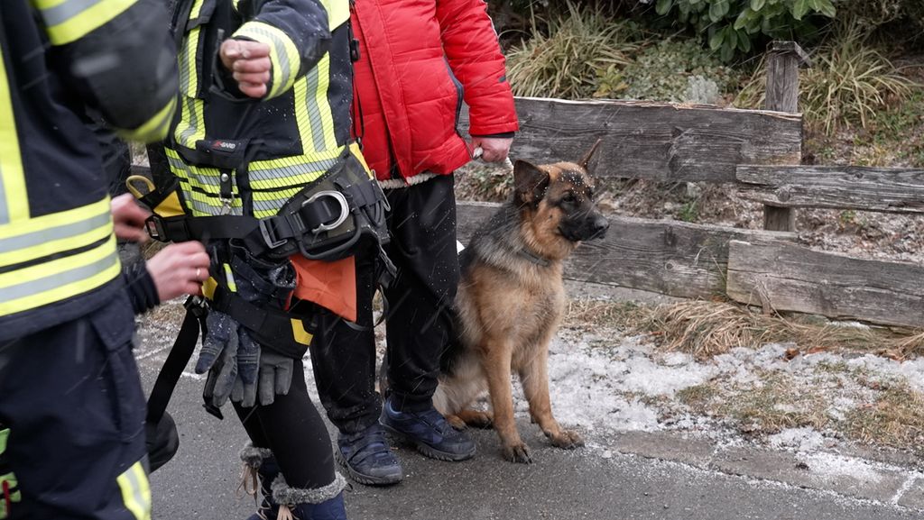 Am Neujahrsabend erreichte die Feuerwehr die Meldung, dass der Hund im ersten Stock der Ruine gesichtet worden sei. Allerdings konnten die Retter erst jetzt mit einer Drehleiter einen Bergungsversuch starten - mit Erfolg. Die Einsatzkräfte konnten die einjährige Schäferhündin Pauli retten.