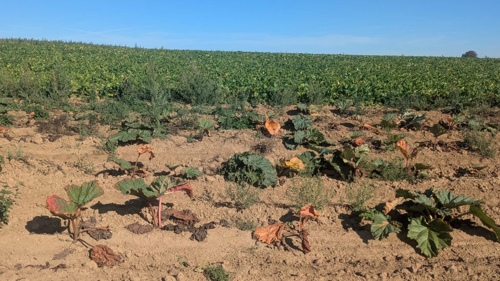 Nördlich von Würzburg steht Jasper Pleyer auf einem seiner letzten Rhabarberfelder. Der Biobauer hat den Kampf gegen die Schilf-Glasflügelzikade verloren: Von einst 50 Hektar Rhabarber stehen nur noch vier, weil sich der Anbau nicht mehr gelohnt hat. Dabei war Rhabarber seine Hauptkultur, er ist wirtschaftlich davon abhängig. "Aber es hat einfach keinen Sinn mehr gemacht, wir hatten nur noch zehn Prozent vom Ertrag", erklärt Pleyer.