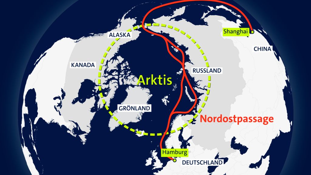 Schiffsroute Shanghai-Hamburg über die Arktis