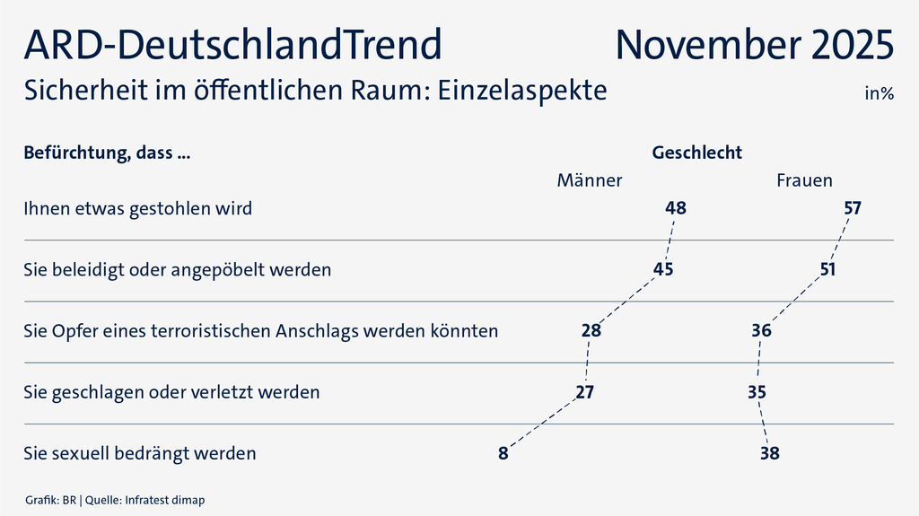 ARD-DeutschlandTrend im November 2025: Sicherheit im öffentlichen Raum – Unterschiede zwischen Männern und Frauen